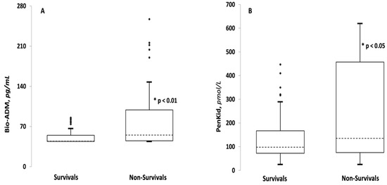APA StyleCasalboni, S., Valli, G., Terlizzi, F., Mastracchi, M., Fidelio, G., De Marco, F., Bernardi, C., Chieruzzi, A., Curcio, A., De Cicco, F., Colella, N., Papasidero, I. D., Tartarone, E., Ruggieri, M. P., & Di Somma, S. (2022). 30 Days Mortality Prognostic Value of POCT Bio-Adrenomedullin and Proenkephalin in Patients with Sepsis in the Emergency Department. Medicina, 58(12), 1786. https://doi.org/10.3390/medicina58121786