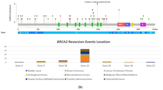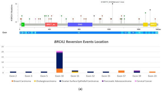 - Pettitt, S.J.; Frankum, J.R.; Punta, M.; Lise, S.; Alexander, J.; Chen, Y.; Yap, T.A.; Haide, S.; Tutt, A.N.J.; Lord, C.J. Clinical BRCA1/2 Reversion Analysis Identifies Hotspot Mutations and Predicted Neoantigens Associated with Therapy ResistanceBRCA Gene Reversions. Cancer Discov. 2020, 10, 1475–1488. [Google Scholar] [CrossRef] [PubMed]