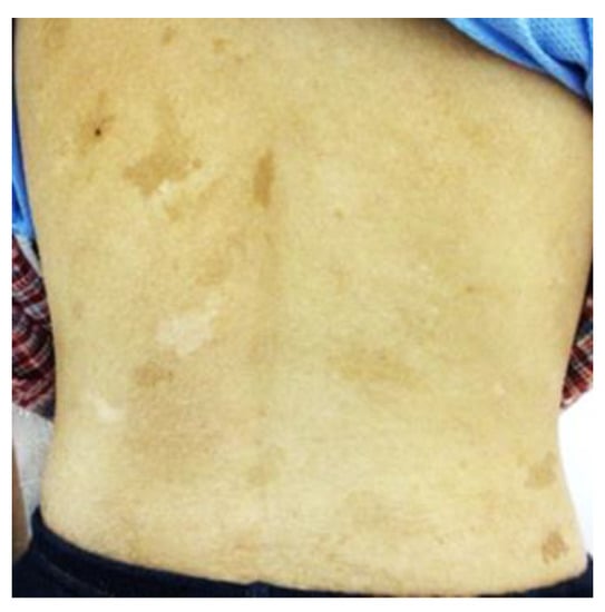 - Anderson, S. Café au Lait Macules and Associated Genetic Syndromes. J. Pediatr. Health Care 2020, 34, 71–81. [Google Scholar] [CrossRef]