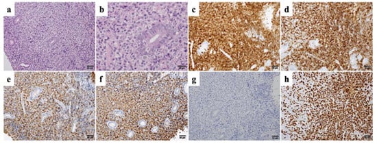 - Koyama, R.; Hirayama, Y.; Nagai, T.; Ohta, H.; Kura, T.; Mogi, Y.; Kon, S.; Sakamaki, S.; Niitsu, Y. A case of diffuse large B-cell lymphoma transformed from immunoglobulin A-producing marginal zone B-cell lymphoma. Int. J. Hematol. 2000, 72, 349–352. [Google Scholar]