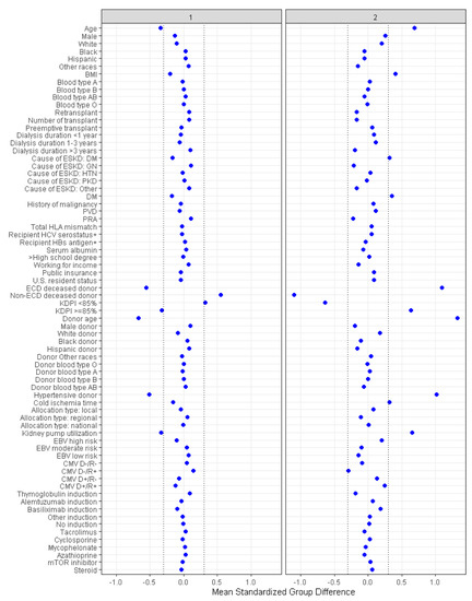 We abstracted the comprehensive list of recipient-, donor-, and transplant-related characteristics, as shown in Table 1, to include in cluster analysis. KDPI was calculated based on donor age, height, weight, race, history of hypertension, diabetes mellitus, hepatitis C, cause of death, serum creatinine, and donor after cardiac death criteria. KDPI score ranges from 0–100% with higher score indicating lower quality donor kidneys. All variables had missing data of <5%, and multivariable imputation by chained equation (MICE) method was subsequently utilized [48].