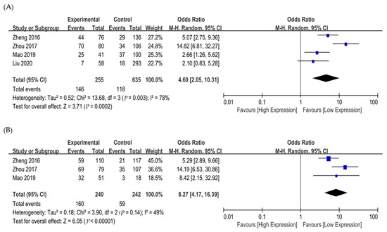 | H. Zhang (2014) [30] | China | Ovarian cancer | 100 | IHC | Rabbit polyclonal Ab (1:200, Abcam) | Staining score * ≥ 2 | 2.90 (1.64–5.13) p = 0.01 | 3.54 (1.99–6.29) p = 0.01 |