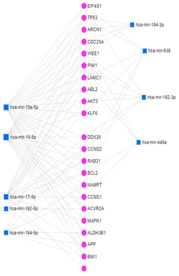 - Fan, Y.; Siklenka, K.; Arora, S.K.; Ribeiro, P.; Kimmins, S.; Xia, J. miRNet-dissecting miRNA-target interactions and functional associations through network-based visual analysis. Nucleic Acids Res. 2016, 44, W135–W141. [Google Scholar] [CrossRef]