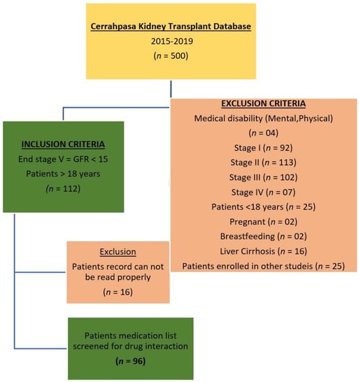 In the duration of six months (December 2009 to May 2010) we reviewed nephrology transplant unit Cerrahpasa patient records from 2015–2019. The patients included in this study were males and females more than 18 years old and on more than two medications. Patients with medical disabilities (mental or physical impairment) were excluded. Prescriptions issued for hospitalized patients along with medication information were collected by interviewing the patients and medical professionals, including length of stay in the hospital and patient demographics (age and sex). The usage of the medications of each individual patient was cross-checked with the nurse’s administration record (Figure 1).