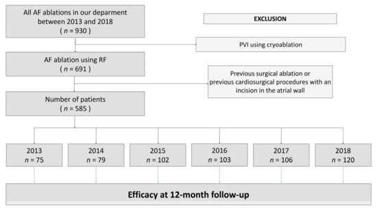 Chicago/Turabian StyleMyrda, Krzysztof, Piotr Buchta, Aleksandra Błachut, Michał Skrzypek, and Mariusz Gąsior. 2022. "Temporary Trends Concerning the Extent and Efficacy of Atrial Fibrillation Ablation Using Radiofrequency Energy in a Polish Single-Center Experience" Medicina 58, no. 2: 187. https://doi.org/10.3390/medicina58020187