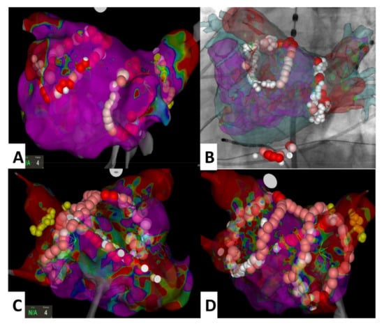 - Verma, A.; Wazni, O.M.; Marrouche, N.F.; Martin, D.O.; Kilicaslan, F.; Minor, S.; Schweikert, R.A.; Saliba, W.; Cummings, J.; Burkhardt, J.D.; et al. Pre-existent left atrial scarring in patients undergoing pulmonary vein antrum isolation: An independent predictor of procedural failure. J. Am. Coll. Cardiol. 2005, 45, 285–292. [Google Scholar] [CrossRef]