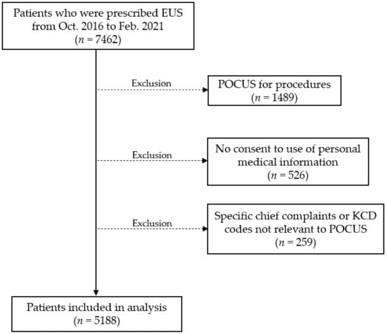 Patient selection. Abbreviations. EUS, emergency ultrasound; POCUS, point-of-care ultrasound; KCD, Korean Standard Classification of Diseases.