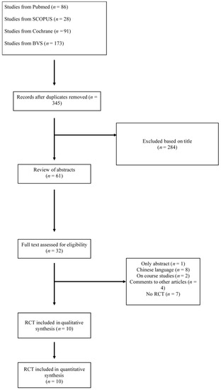 Over the years, different meta-analyses have been carried out to provide evidence on the subject [8,9,10,11]. However, in recent times, there have not been many new studies in this regard, the last being published in 2019, based on the search criteria. Therefore, it is considered necessary that the latest works form part of a new meta-analysis.