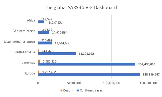 - World Health Organization. WHO Coronavirus Disease 2019 (COVID-19) Dashboard. Available online: https://covid19.who.int/ (accessed on 28 January 2022).