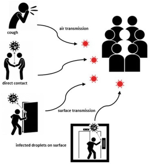 - Xue, X.; Ball, J.K.; Alexander, C.; Alexander, M.R. All Surfaces Are Not Equal in Contact Transmission of SARS-CoV-2. Matter 2020, 3, 1433–1441. [Google Scholar] [CrossRef]