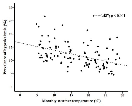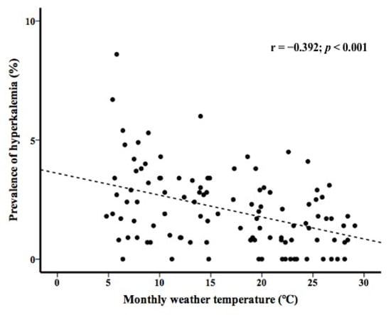 3.4. Prevalence of Hyperkalemia and Monthly Weather Temperature