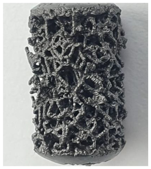 In recent years, the interest in additive manufacturing (AM) has been growing, thanks to the possibility of realizing complex and light 3D structures with potential bio-mimicry features, a high level of customization, and limited time to market [1,2,3]. AM can be an attractive technological solution, overcoming the limitations of conventional fabrication methods and being considered a potential alternative to the traditional manufacturing route, including casting, hot and cold plastic deformation, machining, and post-processing [4,5]. The orthopedic implants and devices sector can gain some advantages from the diffusion of AM techniques; the most relevant ones are realizing three-dimensional (3D) trabecular structures that mimic the bones’ trabecular structure and implant personalization for the patient [6]. Among AM methods, powder bed fusion processes, such as selective laser melting (SLM) and electron beam melting (EBM), offer great potential for the fabrication of high-quality porous metal implants [6]. In detail, SLM is the most diffused manufacturing technique used for producing complex and high-tech components, thanks to its superior precision in the realization of thin features [7,8,9,10]. In this regard, the SLM process has been deeply studied for the 3D printing of several alloys, such as Ti6Al4V, CoCrMo, and 316L, typically adopted in biomedical applications. Literature reports that a satisfactory porous structure should be open cellular and interconnected to ensure cell distribution and migration and facilitate blood vessel formation [11]. Due to the single-cell size, the minimum pore size must be approximately 100 μm, which allows the bone cells to migrate and be transported for osteogenesis [12,13]. The three-dimensional (3D) architecture and the characteristics of the surfaces of the prosthetic implants play a decisive role in the biological response. High porosity and an optimal pore size distribution are capable of promoting cell migration and vascularization. Randomly created irregular porous structures favor permeability and, therefore, the stimulation of bone growth within them.