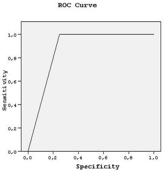 When we evaluate the results of both readers by the ROC curve, R of tendons had an AUC value: 0.875 ± 0.141, with 100% sensitivity and specificity for both readers. Sensitivity remained constant (100%); specificity ranged from 25 to 100% for the AUC values between 0.500 and 1.000. PT of tendons had an AUC value 0.734 + 0.080, and 100% sensitivity and specificity were found for both readers, by AUC value: 0.500, 91.7% sensitivity, and 44.8% specificity were predicted. Sensitivity ranged from 91.7 to 100% and specificity between 44.8 and 100% for both readers with AUC values between 0.500 and 1.000.
