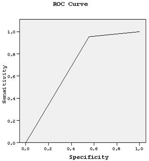 ROC curve analysis, regarding DWI.MRI comparison for tendons with tenosynovitis.