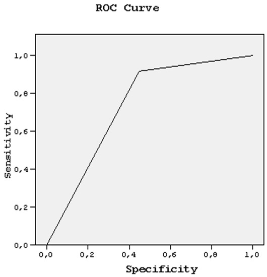 AUC value for T of all tendons was 0.699 + 0.116 and from this value to AUC: 1.000, indicating 100% sensitivity and specificity. AUC value: 0.500, presented 95.5% sensitivity and 55.6% specificity for both readers. Sensitivity ranged from 95 to 100%, specificity ranged from 55 to 100% between these AUC values for both readers (Figure 8).