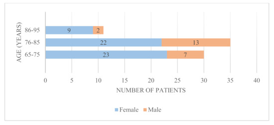 The mean age of the patients was 76.28 ± 7.26 years. We did not record significant differences regarding age between the men and women (p > 0.05).