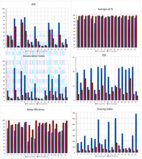 - Bosco, G.; Morato, M.; Pérez-Martín, N.; Navarro, A.; Racionero, M.A.; O’Connor-Reina, C.; Baptista, P.; Plaza, G. One-stage multilevel surgery for treatment of obstructive sleep apnea syndrome. J. Clin. Med. 2021, 10, 4822. [Google Scholar] [CrossRef] [PubMed]