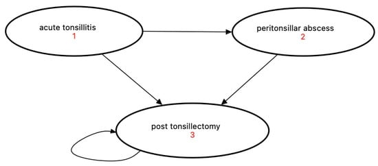 Health states of (peri-)tonsillar infections: (1) acute tonsillitis, (2) peritonsillar abscess and (3) post tonsillectomy.