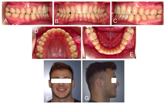 - Mora Martínez, M.A.; Pesqueira Melgarejo, R.; Hernández Espinosa, G.; De Silva Dávila, J.L.; Rodríguez Chávez, J.A. Alteración dentofacial clase III tratado con camuflaje: Reporte de caso clínico. Rev. Mex. Ortod. 2015, 3, 62–69. [Google Scholar] [CrossRef][Green Version]