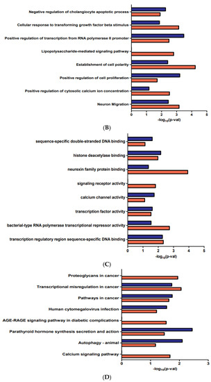 The Database for Annotation, Visualization and Integrated Discovery [DAVID; http://david.ncifcrf.gov (accessed on 25 January 2022)] tools were used. Gene Ontology (GO) annotation and Kyoto Encyclopedia of Genes and Genomes (KEGG) pathway enrichment analyses were executed. Values of p < 0.05 were considered statistically significant.