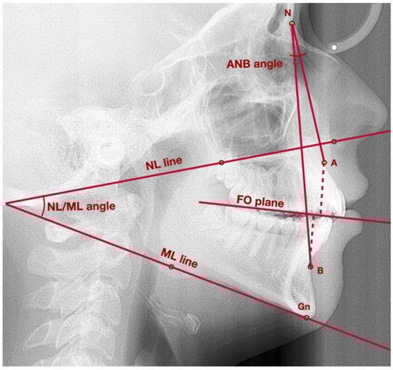| Vertical position of mandible | NL-ML angle | The angle between NL line and ML line |