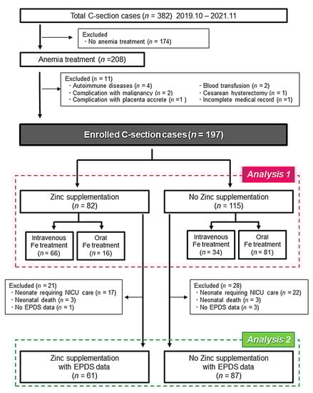 - Maeda, Y.; Ogawa, K.; Morisaki, N.; Tachibana, Y.; Horikawa, R.; Sago, H. Association between perinatal anemia and postpartum depression: A prospective cohort study of Japanese women. Int. J. Gynecol. Obstet. 2020, 148, 48–52. [Google Scholar] [CrossRef] [PubMed] [Green Version]