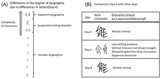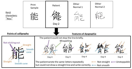 APA StyleYamamoto, Y., Shimasaki, T., Ishigaki, Y., Fujimoto, S., Takahashi, Y., Kimura, S., Aijo, K., Takayanagi, M., Mizuta, S., Masauji, T., & Masaki, Y. (2022). A Case Report on Dysgraphia in a Patient Receiving Blinatumomab: Complex Characters Are Easy to Find in a Handwriting Test. Medicina, 58(6), 733. https://doi.org/10.3390/medicina58060733