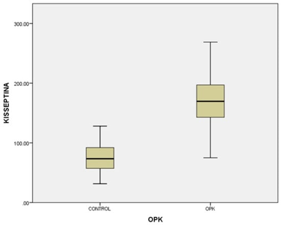 According to Aliabadi et al. [], in female rats that received letrozole injections, kisspeptin-positive cells levels and expression of mRNA were higher than in the control group of normal female rats. They also proved that in PCOS rats, enhanced neural cells might be the origin of LH hypersecretion. On the contrary, Marcondes et al. [,] suggested that in rats treated with testosterone, low kisspeptin expression might be a cause for anovulation and decrease in LH secretion. Inconsistencies of the results regarding the androgenic effects of kisspeptin are due to different research methods used. In all previous studies performed on rats that identified high serum levels of kisspeptin in association with PCOS, they observed that these high levels were associated with PCOS phenotypes with high LH levels. These results are in line with our hypothesis that kisspeptin serum levels may vary among PCOS phenotypes.
