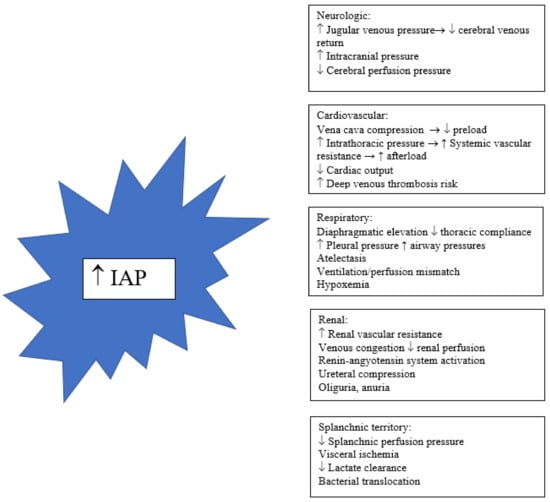 Obesity has been recognized as a predictor of worst prognosis in AP. Excessive adiposity comprising both parenchyma and peripancreatic fat is prone to lipolysis, inflammation, and necrosis. Fat tissue produces proinflammatory cytokines involved in systemic manifestations. On the other hand, obesity is a mechanical risk factor for IAH. However, it should be noted that obese patients develop compensatory mechanisms due to a chronic elevated IAP, so moderate levels of IAH must be carefully evaluated before deciding therapeutic options [].