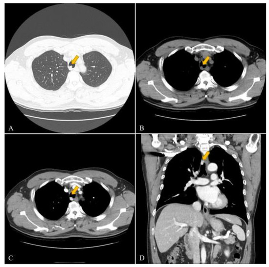 - Huang, C.; Liu, Q.F.; Chen, X.M.; Li, L.; Han, Z.J.; Zhou, X.Y.; Liu, L.; Li, S.Q. A malignant glomus tumor in the upper trachea. Ann. Thorac. Surg. 2015, 99, 1812–1814. [Google Scholar] [CrossRef]