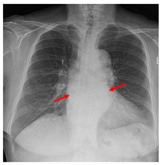 - Shin, H.S.; Kim, S.S.; Kim, J.H. Acute Phlegmonous Esophagitis with Mediastinitis Complicated by an Esophageal Perforation: A Case Report. J. Korean Soc. Radiol. 2018, 79, 45–49. [Google Scholar] [CrossRef]