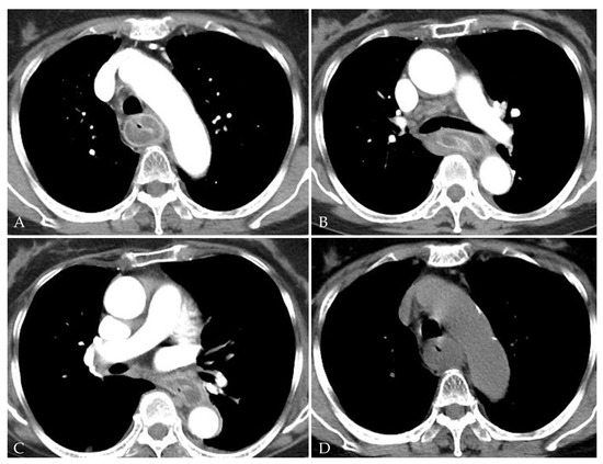 - Young, C.A.; Menias, C.O.; Bhalla, S.; Prasad, S.R. CT Features of Esophageal Emergencies. Radiographics 2008, 28, 1541–1553. [Google Scholar] [CrossRef] [PubMed]