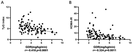 Pearson’s correlations analysis between TyG index, HOMA-IR, and GDR.