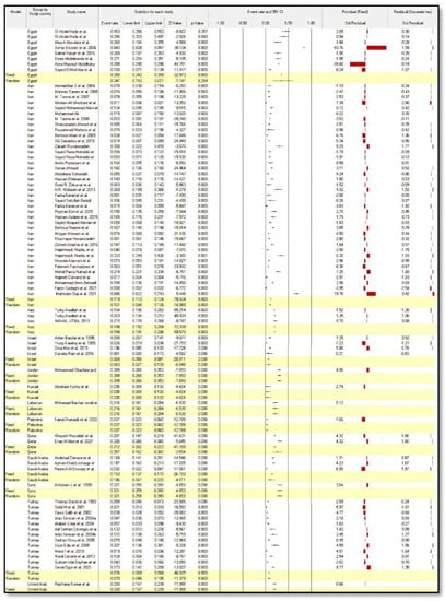 3.3. Overall Pooled Seroprevalence of Hepatitis E Virus Infection in Middle Eastern Countries