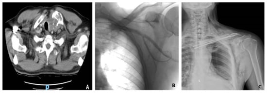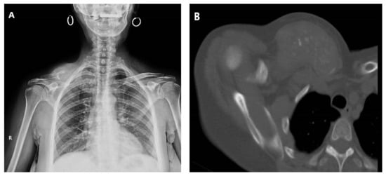 - Smith, J.; McLachlan, D.L.; Huvos, A.G.; Higinbotham, N.L. Primary tumors of the clavicle and scapula. Am. J. Roentgenol. Radium Ther. Nucl. Med. 1975, 124, 113–123. [Google Scholar] [CrossRef][Green Version]