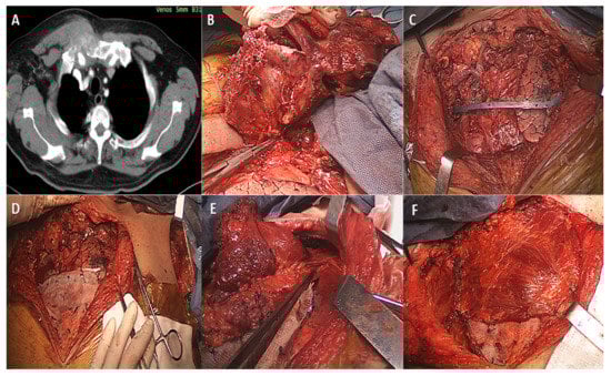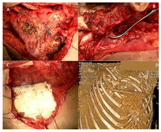 - Vartanian, S.M.; Colaco, S.; Orloff, L.E.; Theodore, P.R. Oklahoma Prosthesis: Resection of Tumor of Clavicle and Chest Wall Reconstructed with a Custom Composite Graft. Ann. Thorac. Surg. 2006, 82, 332–334. [Google Scholar] [CrossRef] [PubMed]