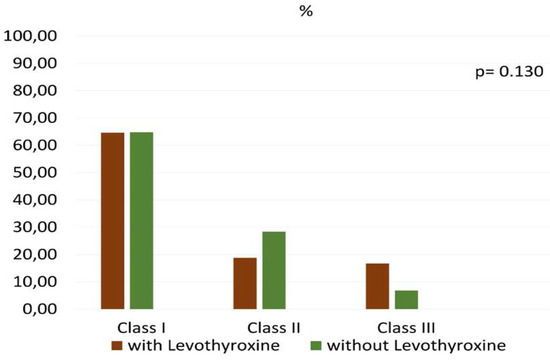 Prevalence of the different obesity classes according to Levothyroxine use.