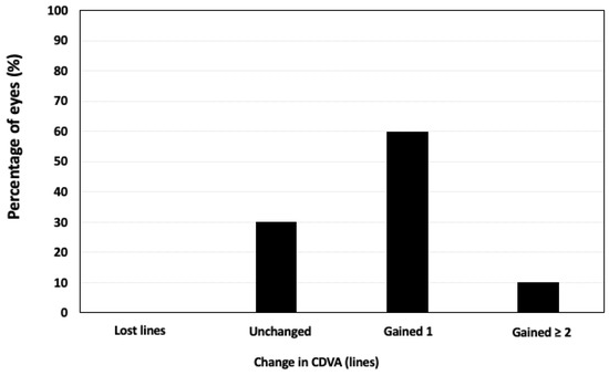 Variation in CDVA 6 months after Femto-LASIK.