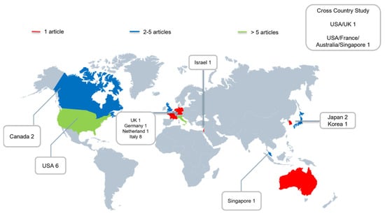 Descriptive statistics of aggregated data are presented as numbers and proportions. The included articles were analyzed according to the country/geographic location, study content, and study period. Descriptive analysis was performed using Microsoft Excel (2016, Microsoft Corporation, Seattle, WA, USA).