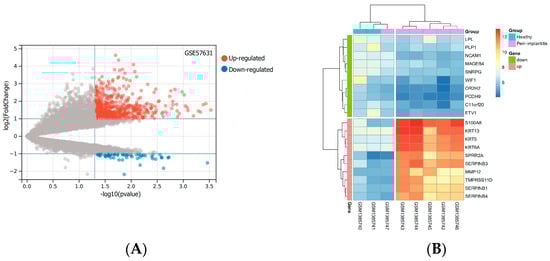 According to the information included in the Gene Expression Omnibus (GEO) database [] (https://www.ncbi.nlm.nih.gov/geo/ accessed on 15 February 2022), we downloaded the PI-related GSE33774 and GSE57631 genome-wide expression datasets. The GSE33774 dataset included 8 healthy samples and 7 PI samples. GSE33774 platform is GPL6244 [HuGene-1_0-st] Affymetrix Human Gene 1.0 ST Array [transcript (gene) version]. The GSE57631 dataset comprised 2 healthy samples and 6 PI samples, and the platform is GPL15034 [HuGene-1_0-st] Affymetrix Human Gene 1.0 ST Array [HuGene10stv1_Hs_ENTREZ, Brainarray v14].
