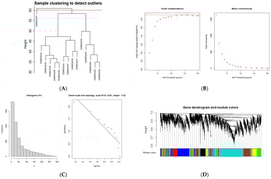 - Langfelder, P.; Horvath, S. WGCNA: An R package for weighted correlation network analysis. Bioinformatics 2008, 9, 559. [Google Scholar] [CrossRef]