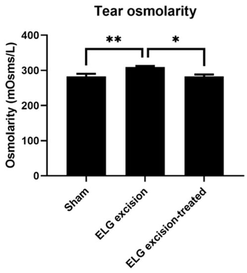 3.2. The Suppression of Tear Osmolarity after Decoction Treatment and ELG Excision