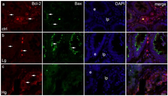 3.1. Semi-Quantification of Bcl-2 and Bax Staining in the Lamina Propria and Epithelial Tissues