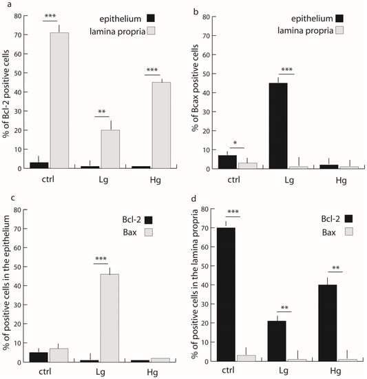 3.2. The Lamina Propria Displays a Significant Expression of Bcl-2 in Comparison with Epithelial Tissues