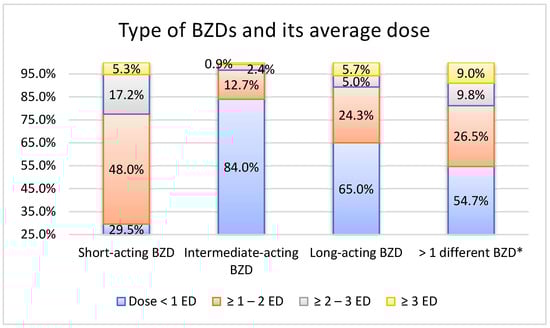 Average dose depending on type of benzodiazepine (BZD). * A significant number of patients had used different types of BZDs during the surveyed time period.