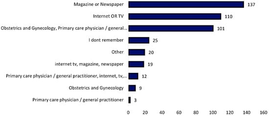 Similar studies concluded that a high level of knowledge about folic acid is associated with a high level of education, which may reflect in the occupation of an individual [3,22,25,26]. Another study was conducted among women in Tabuk city which showed that the major sources of information about folic acid were from gynecology clinics (62.1%) and electronic media (31%), while the current study found that 31.4% of women acquired their information from a magazine or newspaper; furthermore, the internet or TV was the second most common source of information (25.2%). This observed difference between the previously reported study and this study can readily be explained by variation in the age and marital status of the respondents [16].