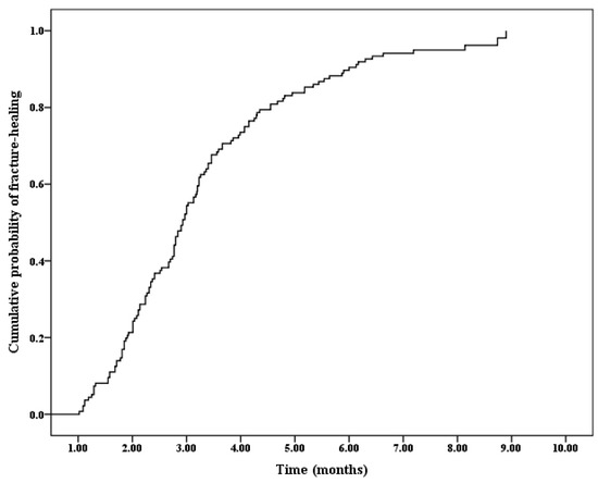 Overall probability of achieving fracture healing according to the Cox regression analysis.