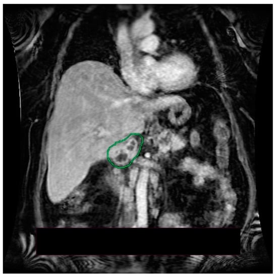 MRI—T2 weighted image: a multicystic cephalopancreatic lesion.
