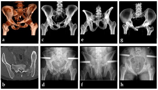 - Kellam, J.F. The role of external fixation in pelvic disruptions. Clin. Orthop. Relat. Res. 1989, 241, 66–82. [Google Scholar] [CrossRef]