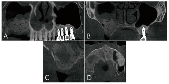 - Park, W.B.; Lim, H.C. Late Developed Unusual Nasal Involvement of Postoperative Maxillary Cyst Following Maxillary Sinus Augmentation: A Case Report. Appl. Sci. 2021, 11, 10730. [Google Scholar] [CrossRef]